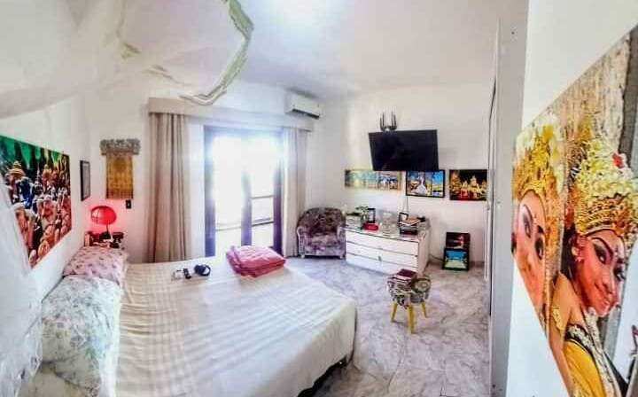 No pavimento superior, possui 2 quartos, sendo 1 com varanda.