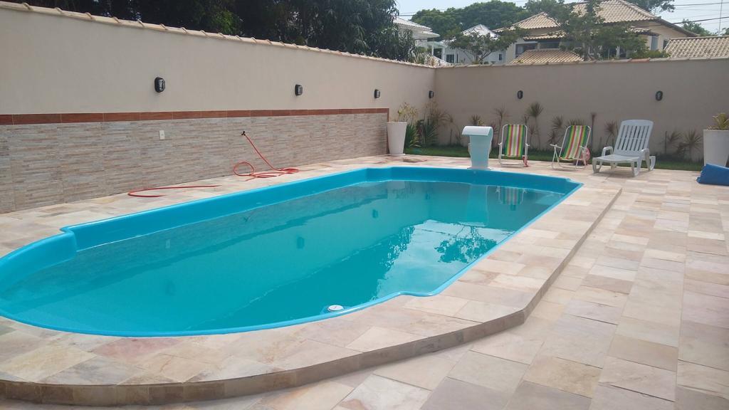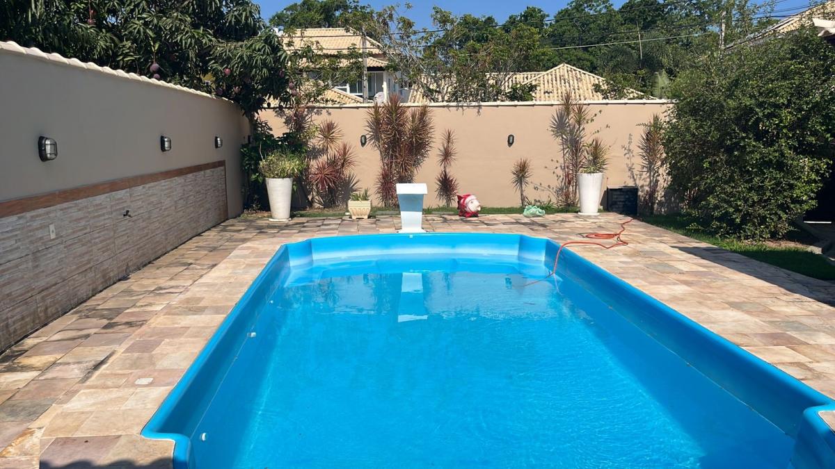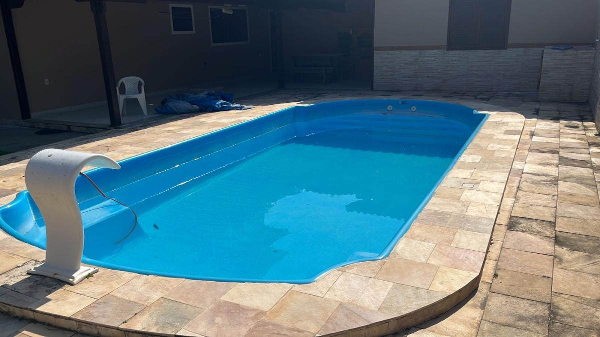 No lado externo a casa possui: piscina , jardim e churrasqueira em área coberta